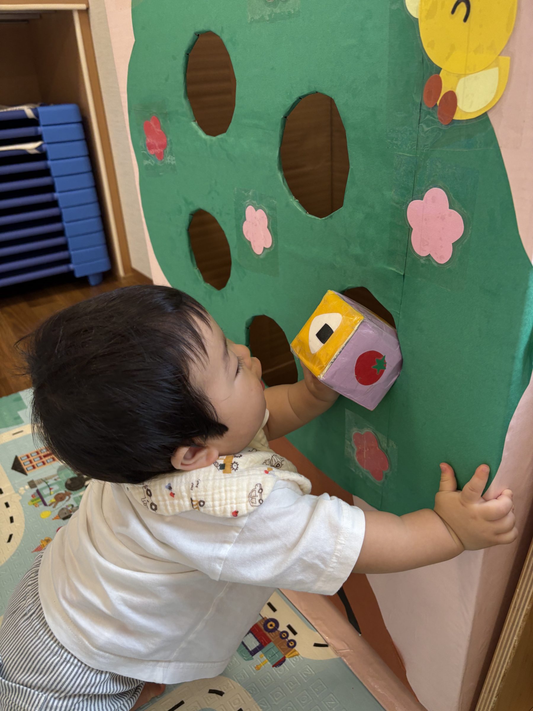 保育室に穴が空いたパネルが登場!
