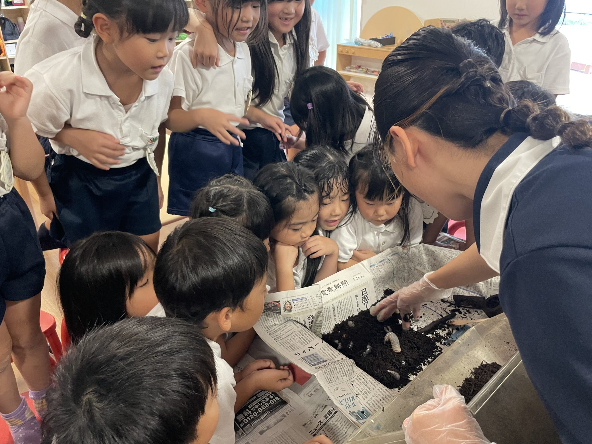 4歳クラスのときに飼っていたカブトムシ(オスとメス)が赤ちゃんを産み、ほし組になってからも子どもたちは1匹の幼虫のお世話を続けてきました。