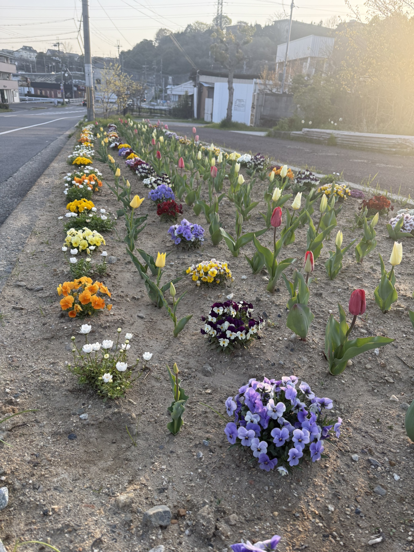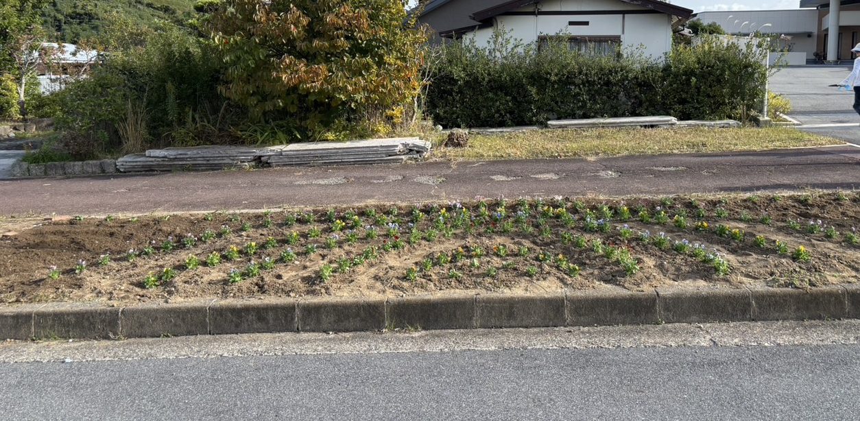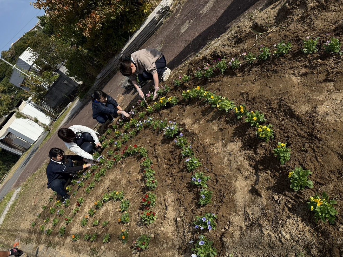 花いっぱい運動で毎年、花壇づくりをしています。土を耕して、肥料を入れて…